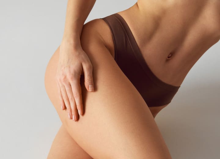Stretch marks are indented skin marks often found on the tummy, hips, breasts or buttocks.